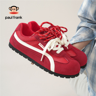百搭小众设计网面透气休闲鞋 大嘴猴红色德训鞋 夏季 2025新款 子 女鞋