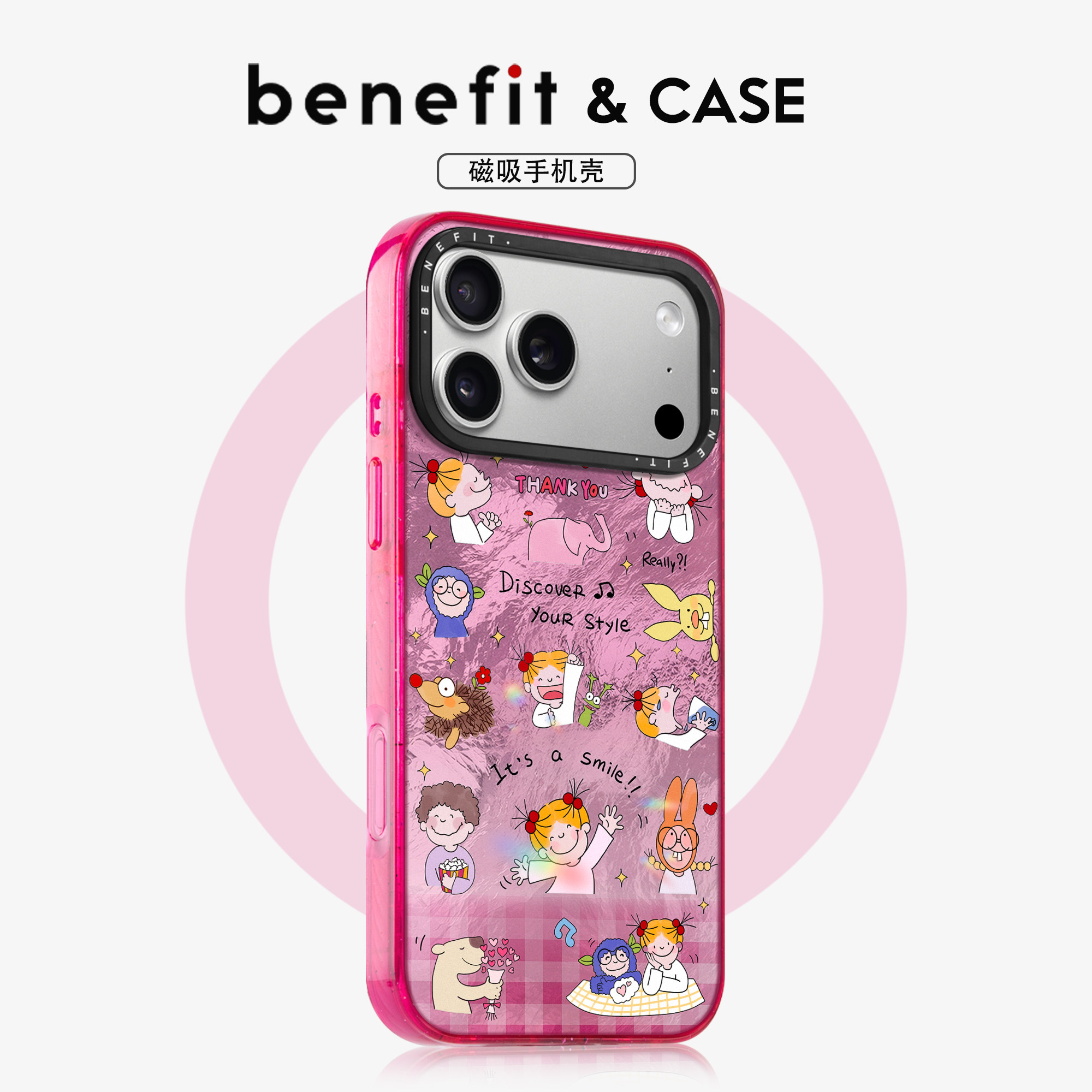benefit日系格纹快乐女孩17适用于iphone16promax苹果15PRO晶盾磁吸手机壳13新款 14套12冰川纹防摔彩色边框