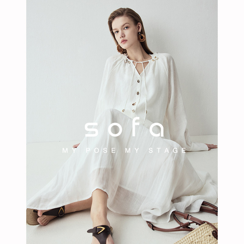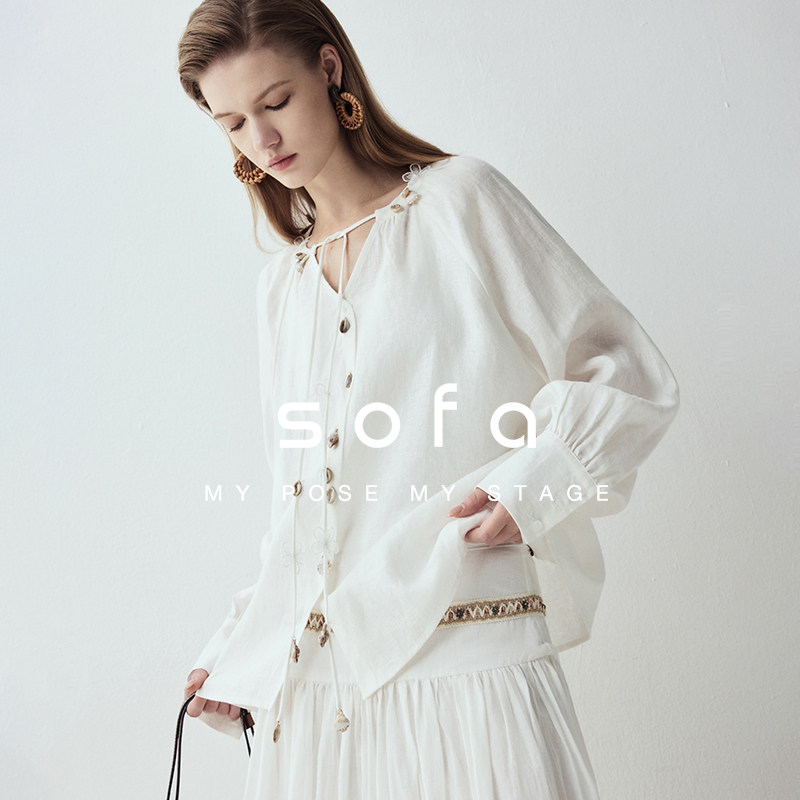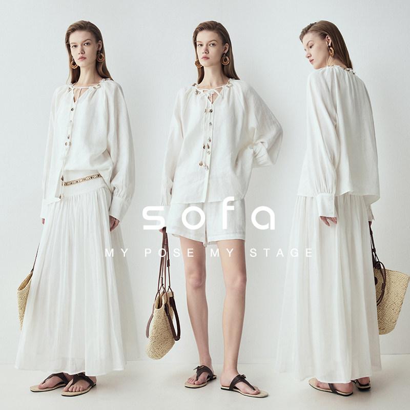 100%亚麻波西米亚风套装 文艺半身裙女 sofa松弛度假风百搭衬衫