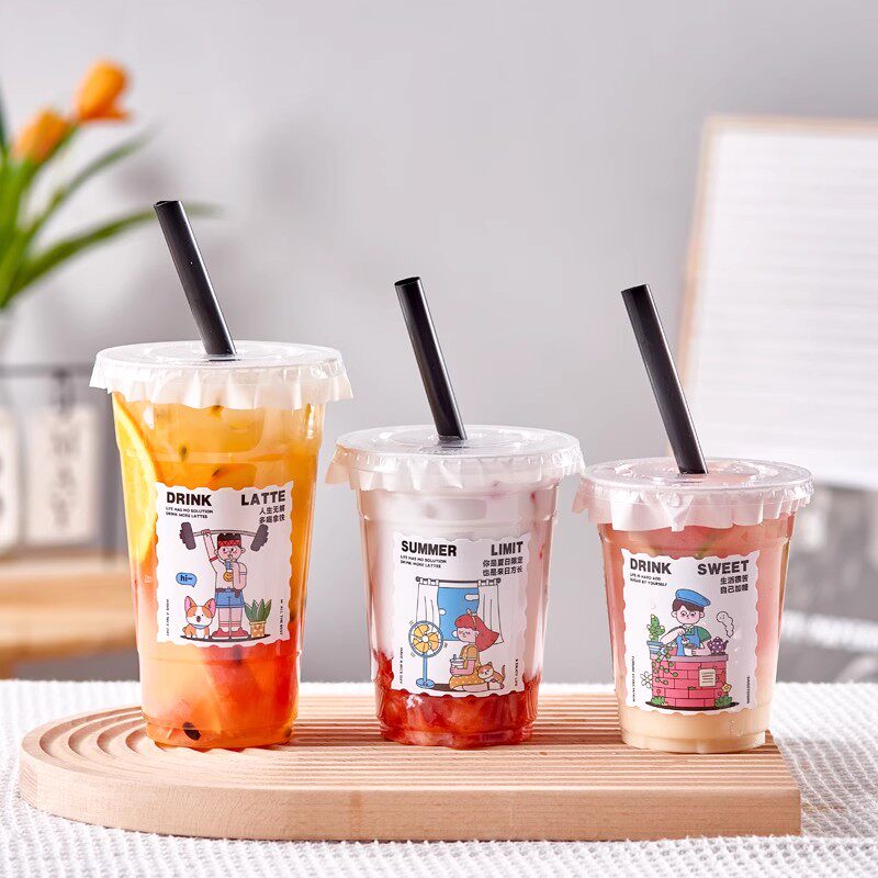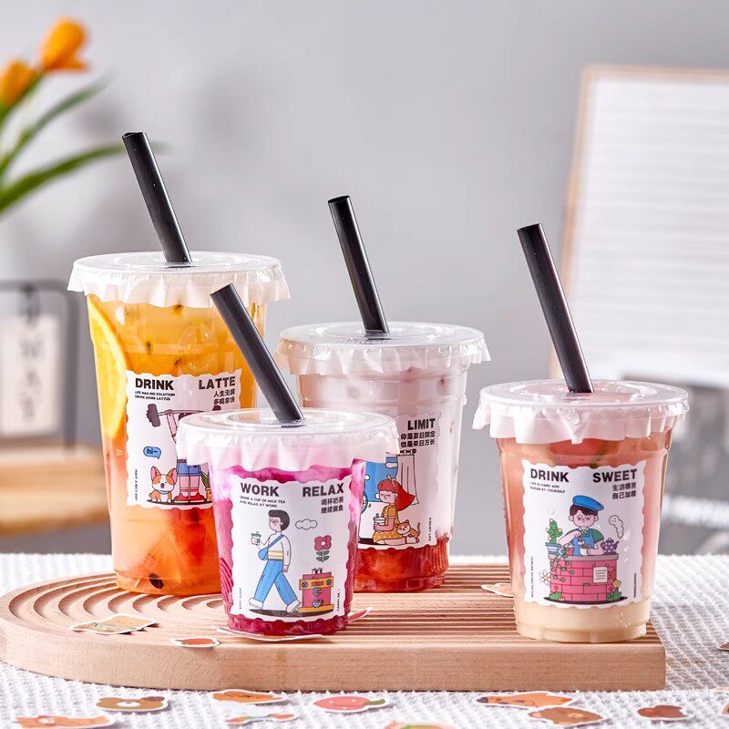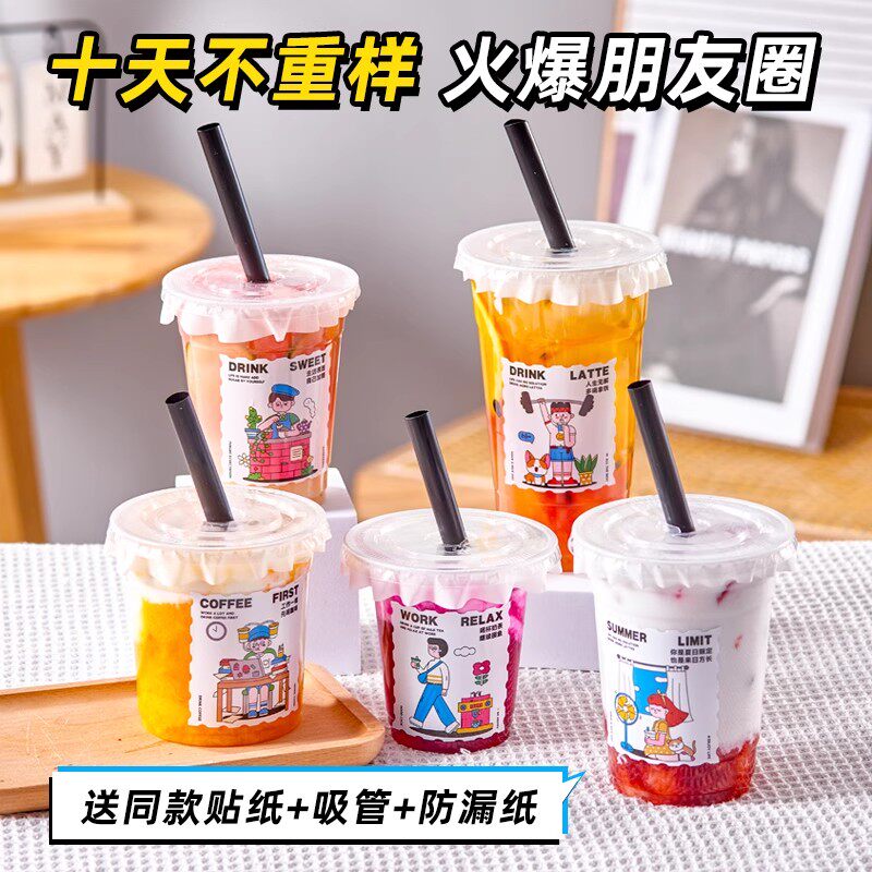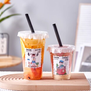 一次性咖啡杯冷饮杯高透PET塑料饮品杯防漏外带打包奶茶杯子带盖