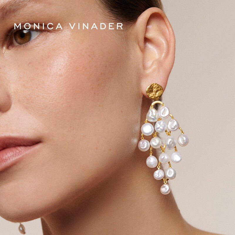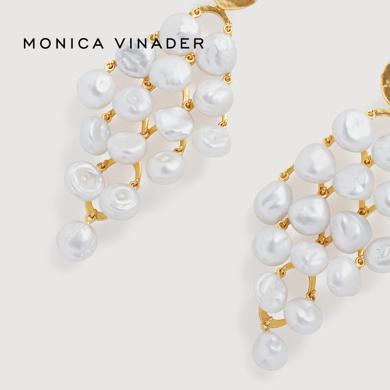 Monica 复古度假流苏女 Vinader莫妮卡耳环奇异珍珠鸡尾酒耳饰意式