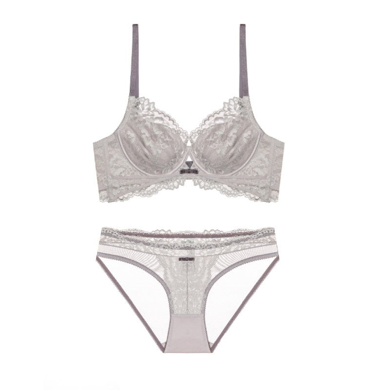 文胸套装 聚拢大胸显小大码 性感蕾丝内衣女薄款 维多利亚多培尔法式