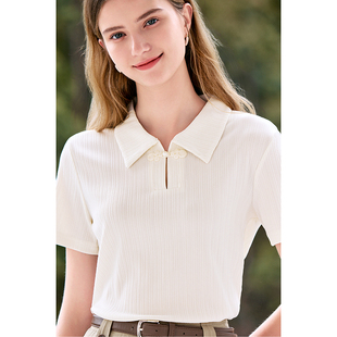 短袖 中国风翻领纯色女式 T恤 盘扣T恤夏款 betu百图新中式