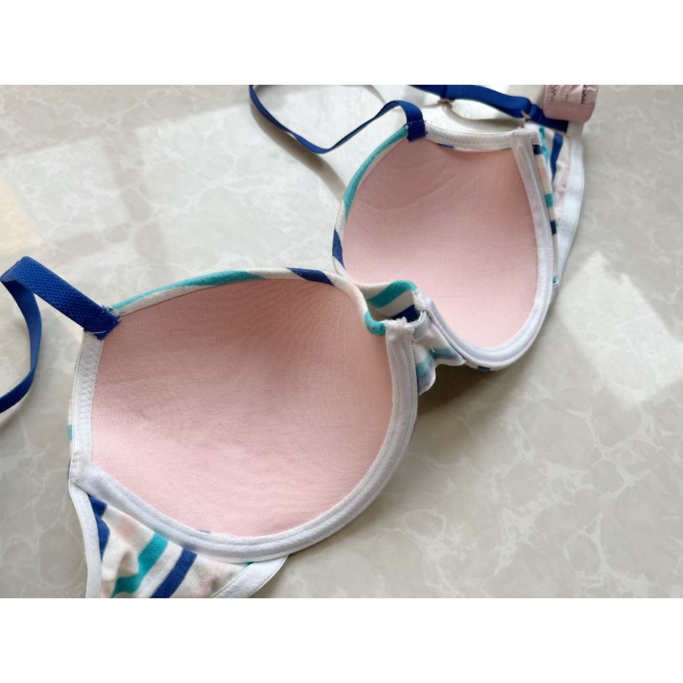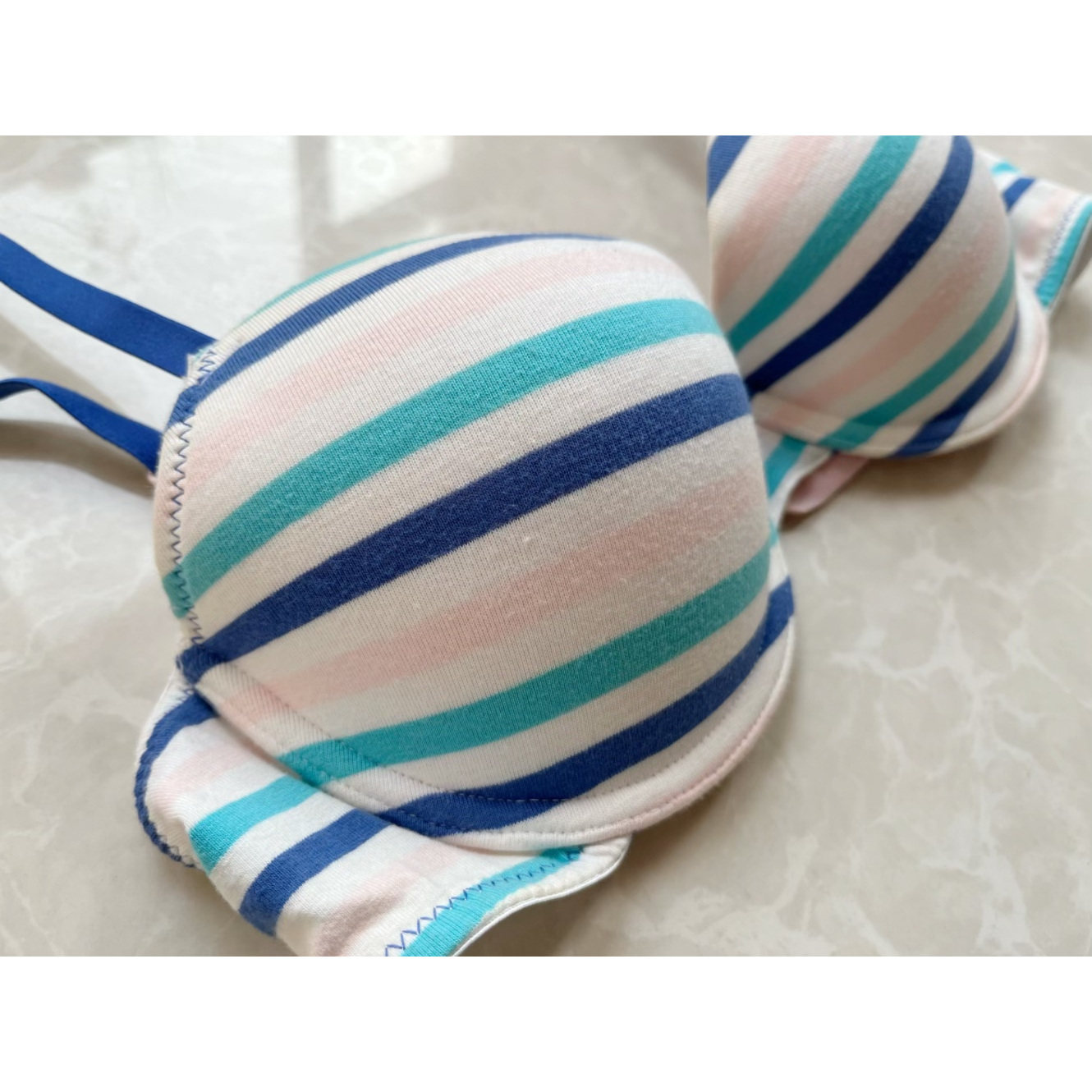 75B 薄罩杯钢圈文胸 捡漏 法国棉质舒适彩色条纹可爱小裙边内衣