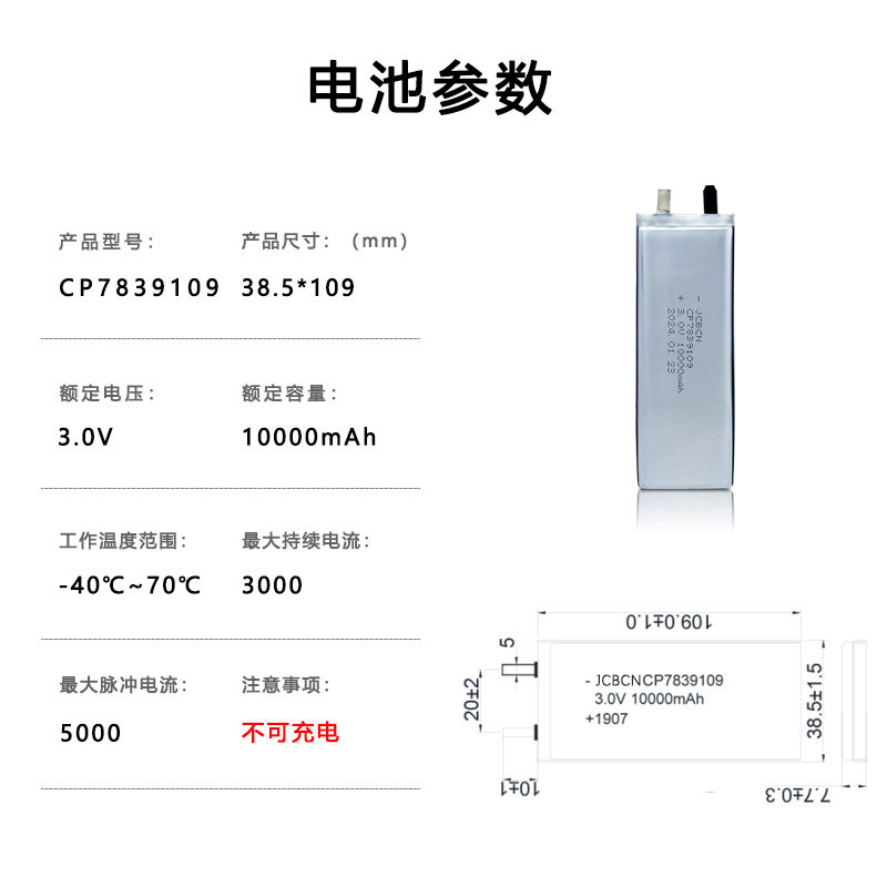 JCBCN九创CP7839109人员识别定位卡温度传感器3V超薄软包锂锰电池