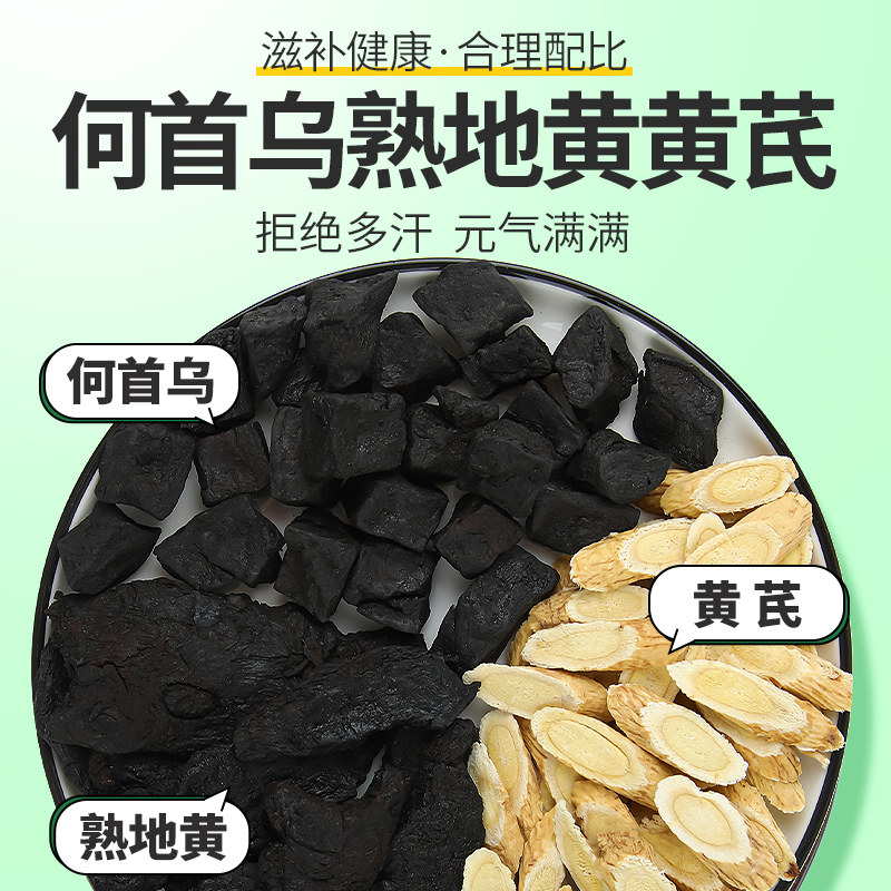 制何首乌熟地黄黄芪中药材组合何首乌3g熟地黄10g黄芪6克泡水煮水