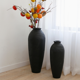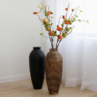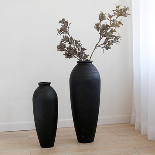 中古风实木大花瓶复古侘寂简约干花落地花器摆台装 饰民宿酒店客厅