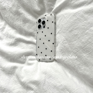 SHERRY 适用于苹果17ProMax手机壳iPhone16Pro小众15少女心14简约气质清新13高级感 ins极简白底黑色波点经典