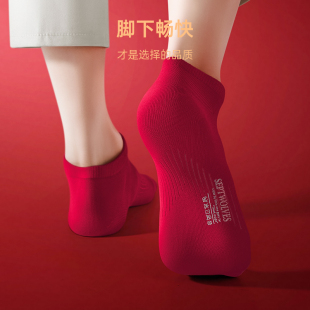 七匹狼红袜子男士 隐形短袜 船袜纯棉本命年酒红色马年全棉结婚男款