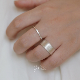JWOOCO原创纯手工999足银錾花简约古典纤细素银戒指闺蜜女友礼物