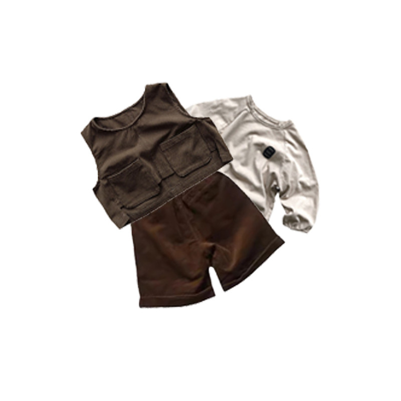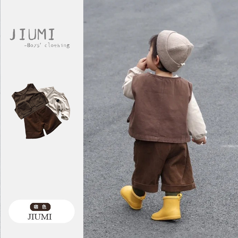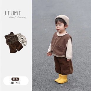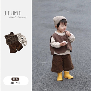 套装 男宝宝秋装 男童复古背心马甲儿童灯芯绒五分裤 新款 潮 2025秋季