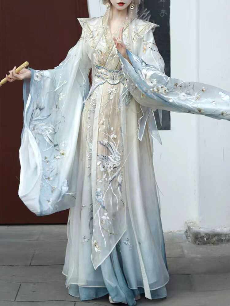 汉元 改良魏晋风刺绣重工仙冬季 素白色 霁月瑶光 异志阁原创汉服