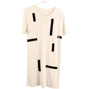 纯棉中长款 夏休闲宽松亚克力条短袖 连衣裙女 正品 江南系列特价