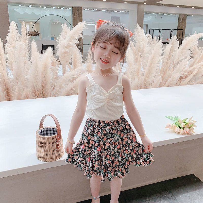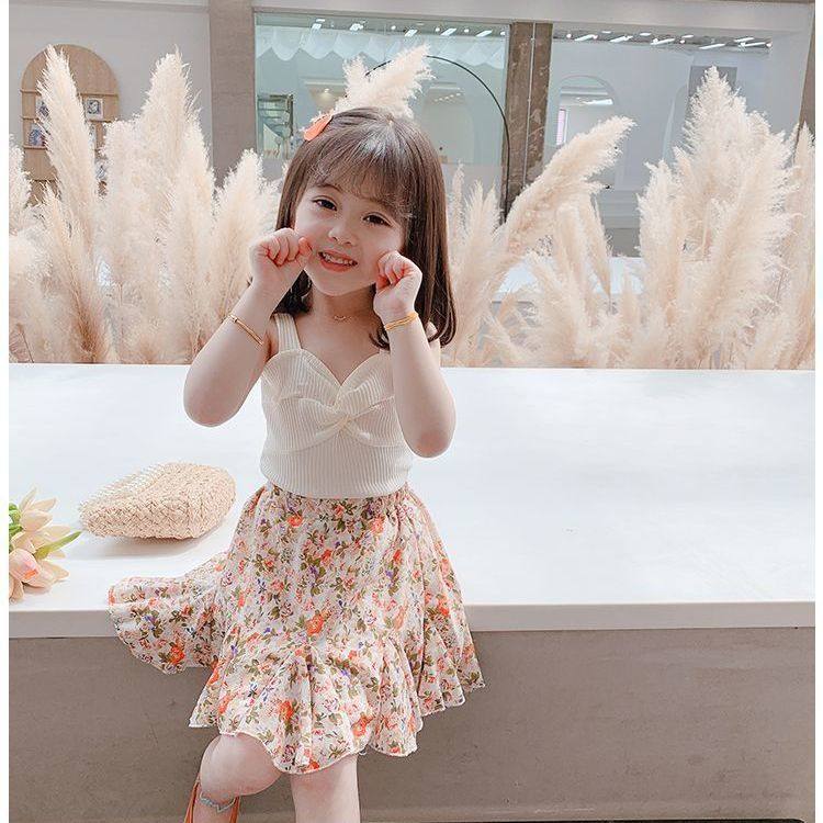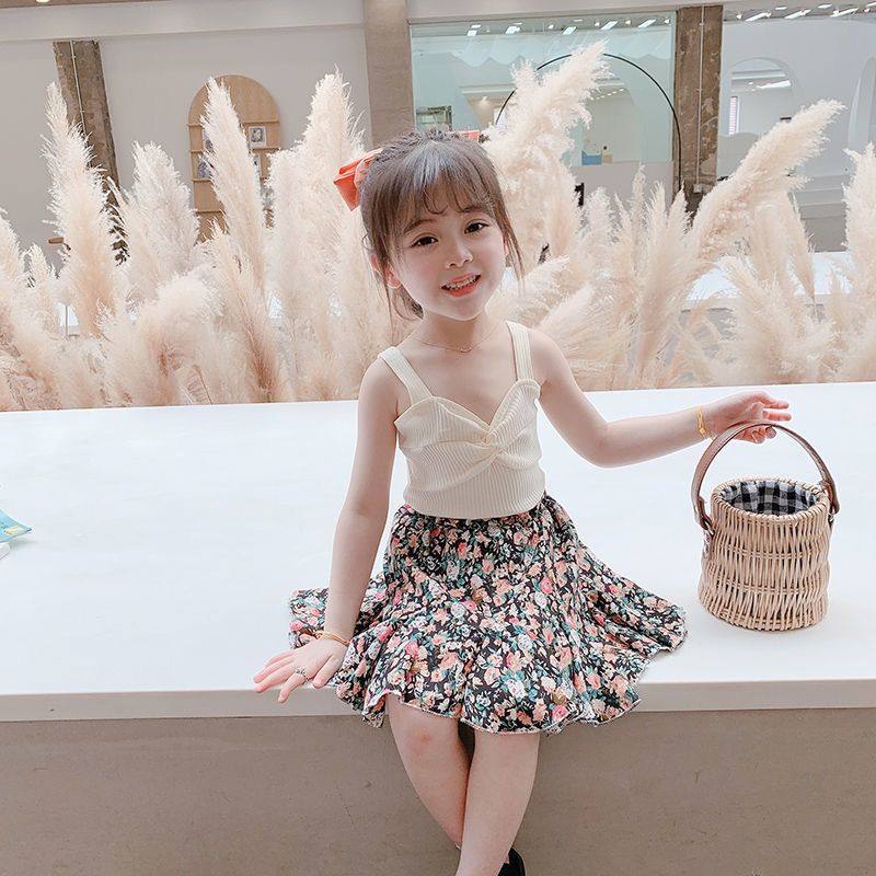 背心裙子两件套碎花韩版 女宝宝夏季 儿童洋气套裙 2025新款 女童套装