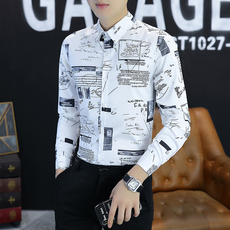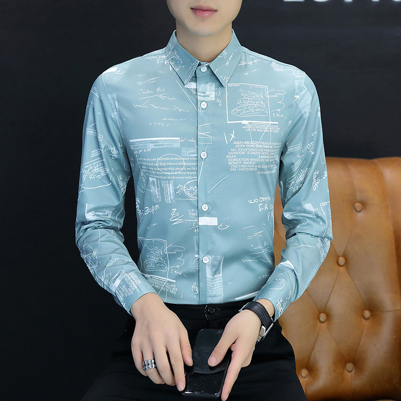 长袖 抗皱免烫弹力冰丝印花衬衫 衬衣春夏季 薄款 商务正装 高级感男士