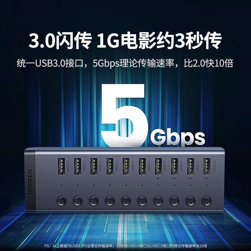 绿联usb多口扩展器hub分集线器带电源10 7口笔记本电脑转换插头拓展外接3.0多功能多接口U盘转接桌面充电
