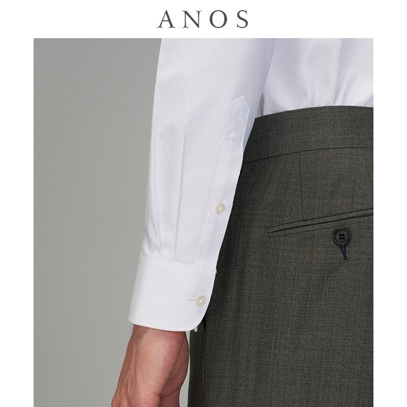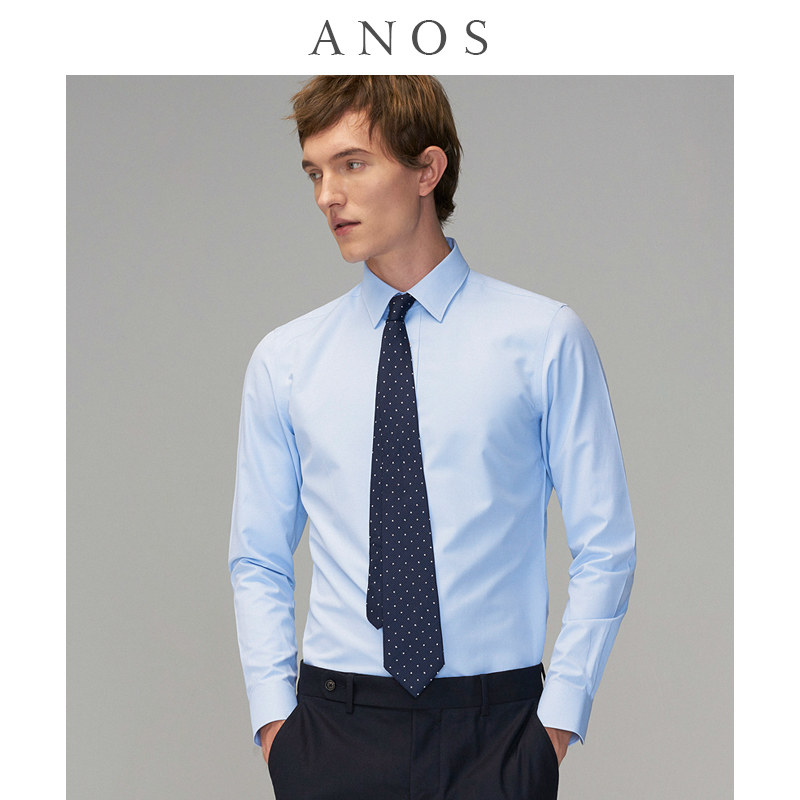 抗皱西装 ANOS免烫修身 暗格纹商务休闲职业正装 男长袖 白衬衣 衬衫