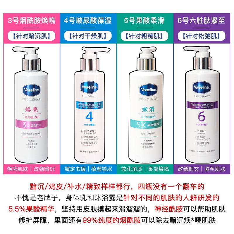 Vaseline凡士林果酸烟酰胺身体乳3 5号紧致滋润提亮肤色去鸡