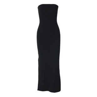 欧美ins风性感一字领抹胸连衣裙女 显瘦侧开叉过膝长裙子 弹力修身
