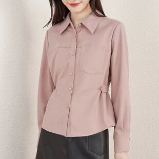 设计感别致短款 女2025秋冬新款 衬衣 小众磨毛收腰衬衫 专柜品质法式