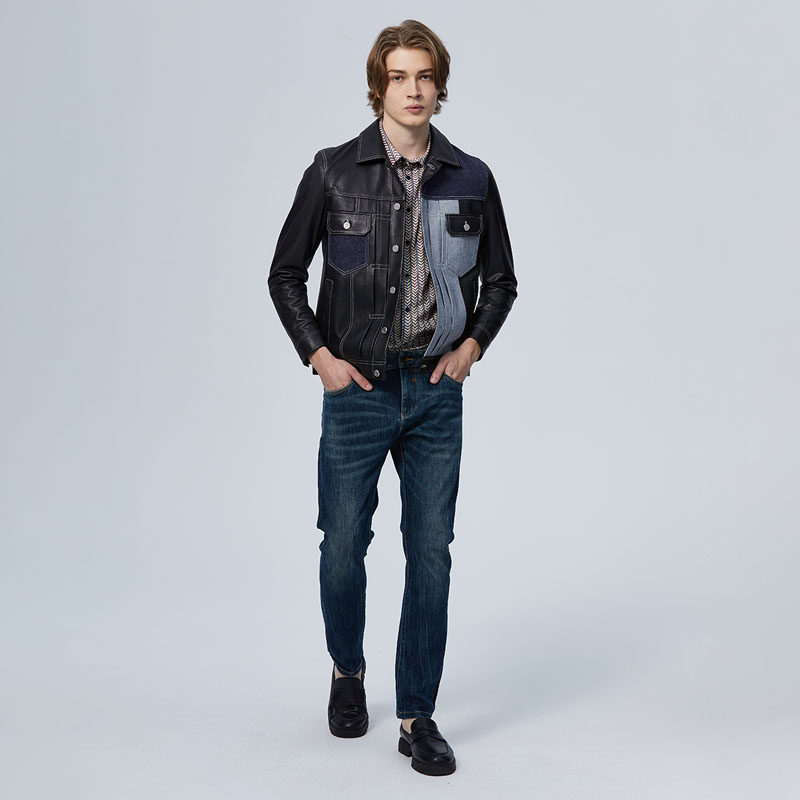 MrBu布先生机车风翻领拉链皮衣2025秋冬新款 纯羊皮外套男BT16986