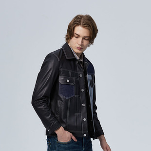 商务立领皮夹克男装 九牧王翻领皮衣外套男秋冬真皮修身 绵羊皮