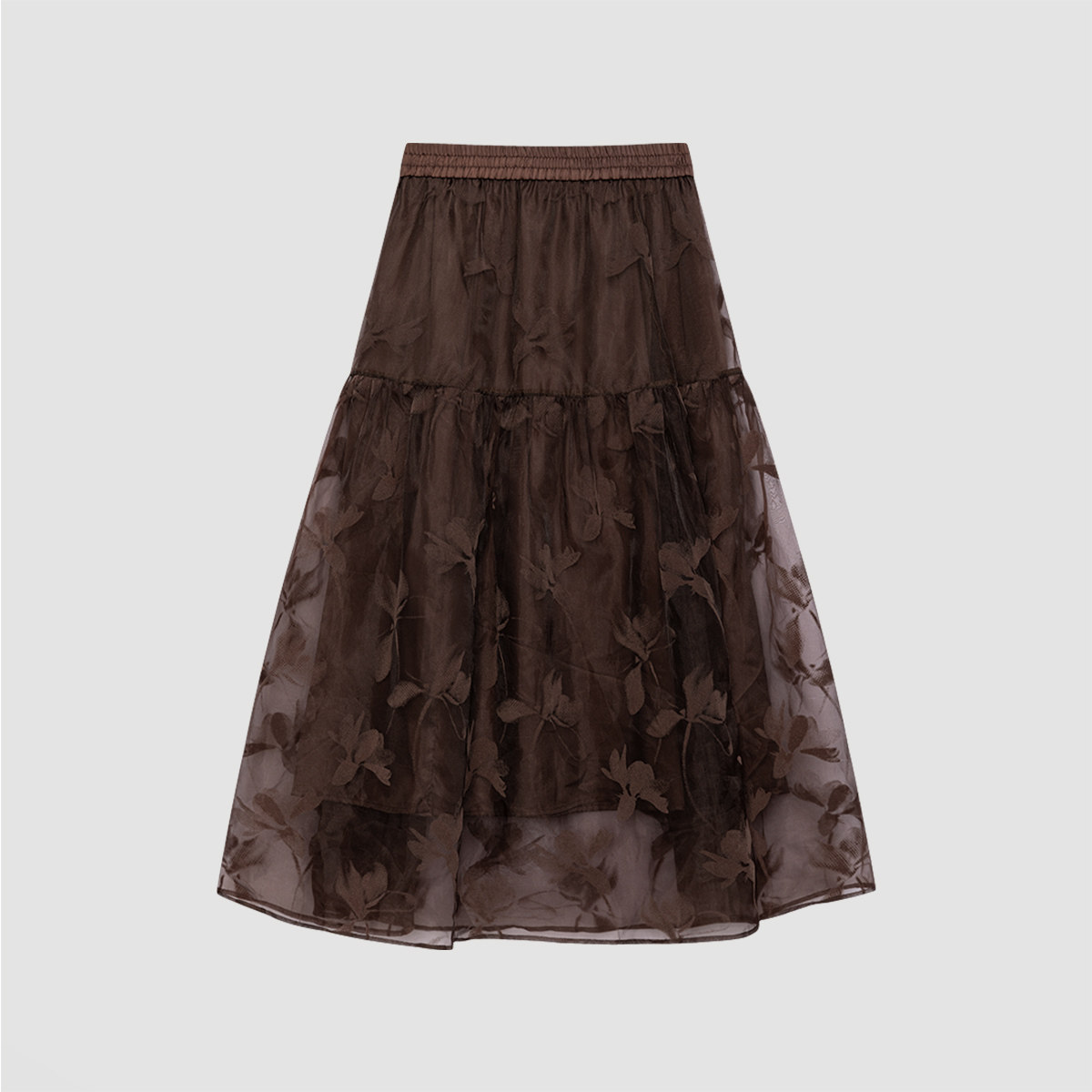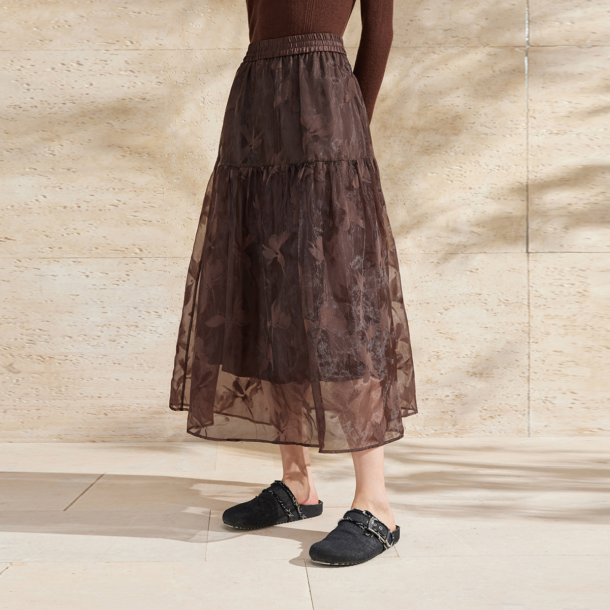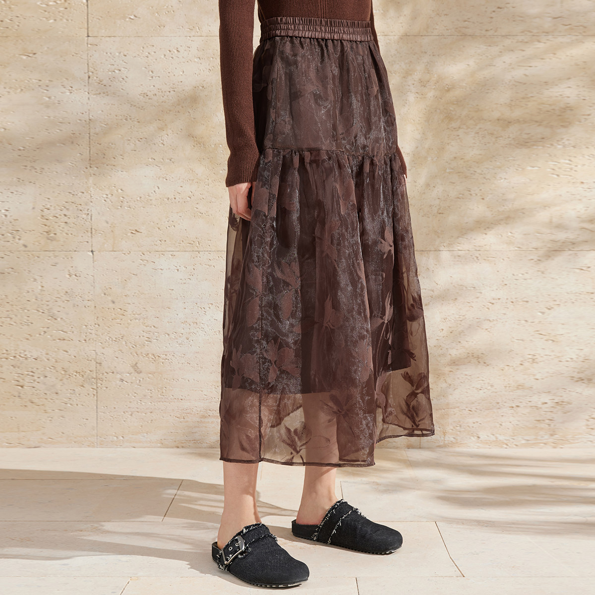 美拉德穿搭高腰棕色a字半身裙女大码 胖mm遮肚藏肉百褶显瘦长裙冬