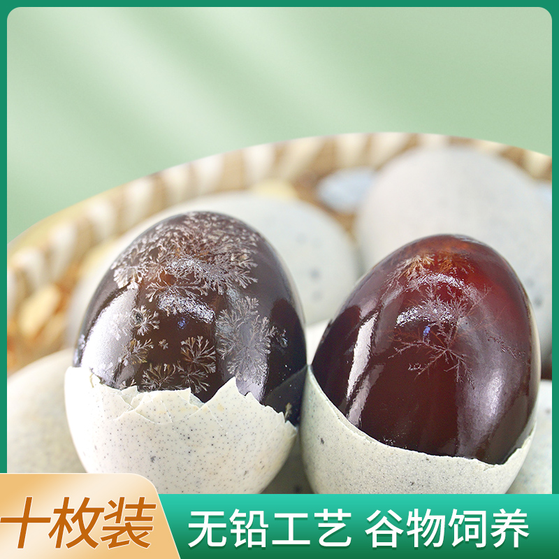 松花蛋溏心松花皮蛋10枚整箱流心鸭蛋咸无铅工艺正宗鸭蛋变蛋盐蛋