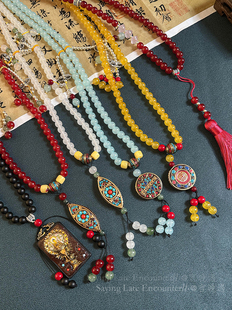 饰配饰 斜跨链旗袍汉服毛衣链装 国风串珠流苏叠戴项链女新中式 长款