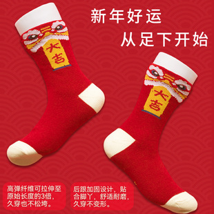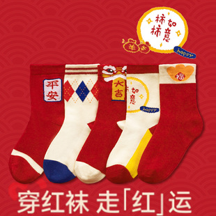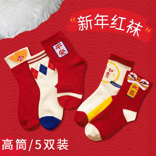 女童袜子儿童圣诞袜冬季 本命年红色长筒女孩宝宝新年红袜秋冬棉袜