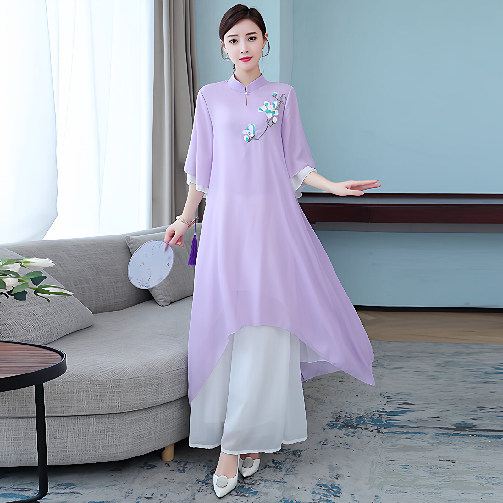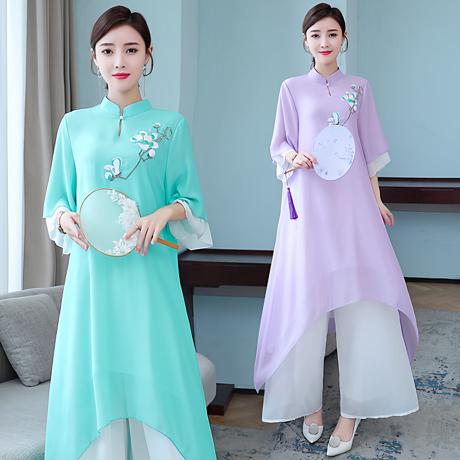 中国风文艺复古春夏装 改良汉服禅服女仙气飘逸长裙茶服禅意连衣裙