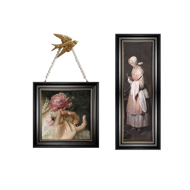 复古法式 饰画高级感金鸟油画框挂画床头卧室中古风壁画 客厅餐厅装