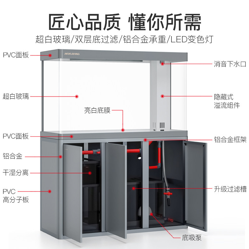 闽江鱼缸客厅家用热弯超白玻璃大型水族箱弧形底滤龙鱼缸2025新款