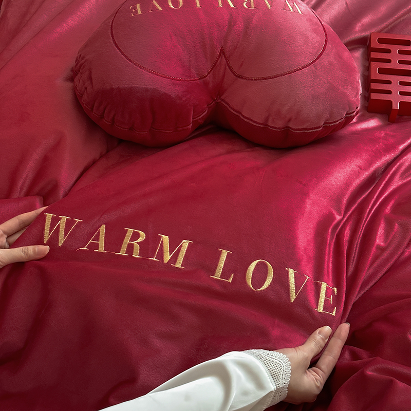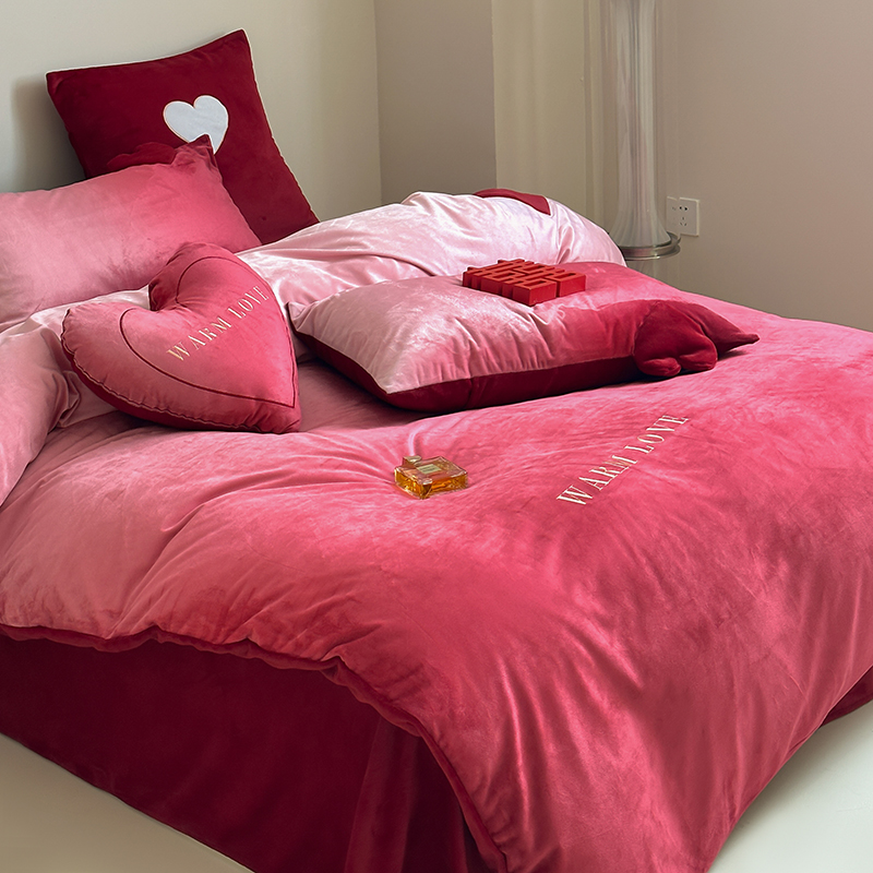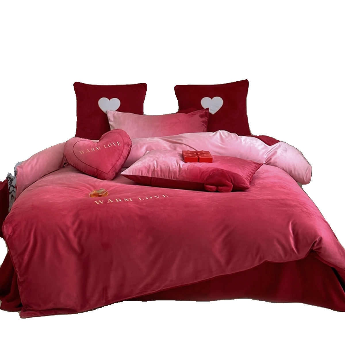 秋冬渐变色牛奶绒婚庆四件套加厚保暖珊瑚绒被套红色结婚床上用品