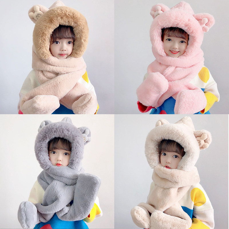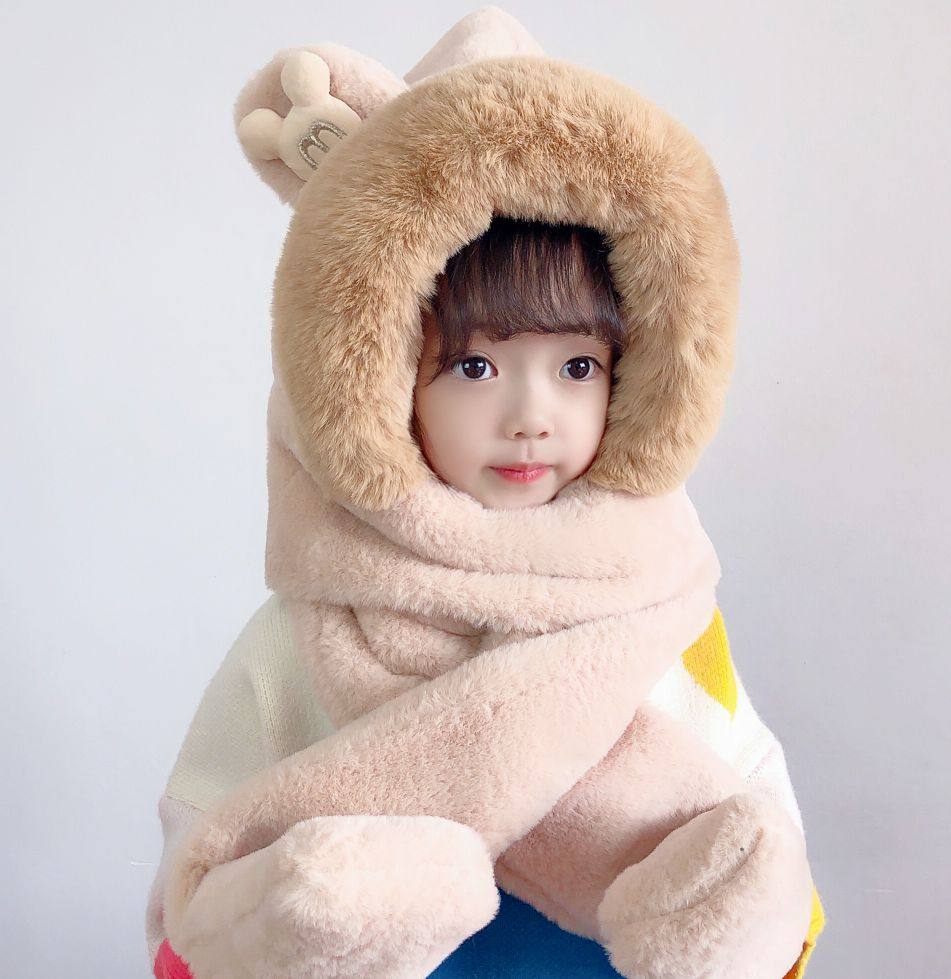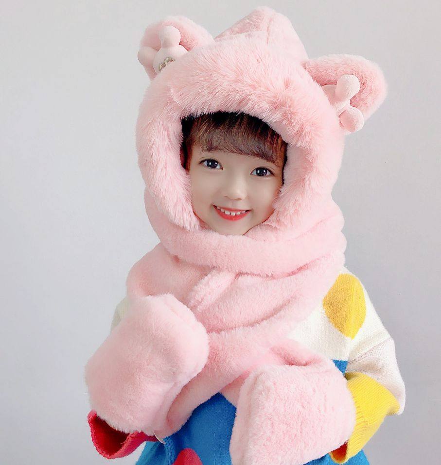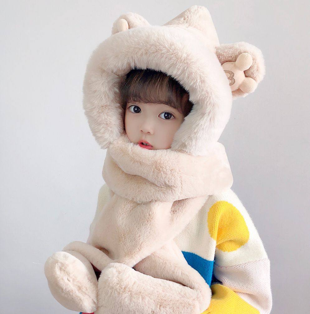 儿童帽子冬季 宝宝防风套头帽 护耳帽围巾手套一体帽男女童2025爆款