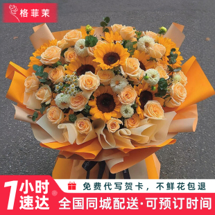 向日葵玫瑰花束全国鲜花速递同城配送女友生日礼物北京上海广州店