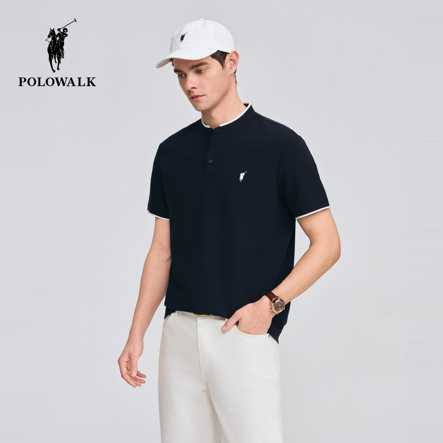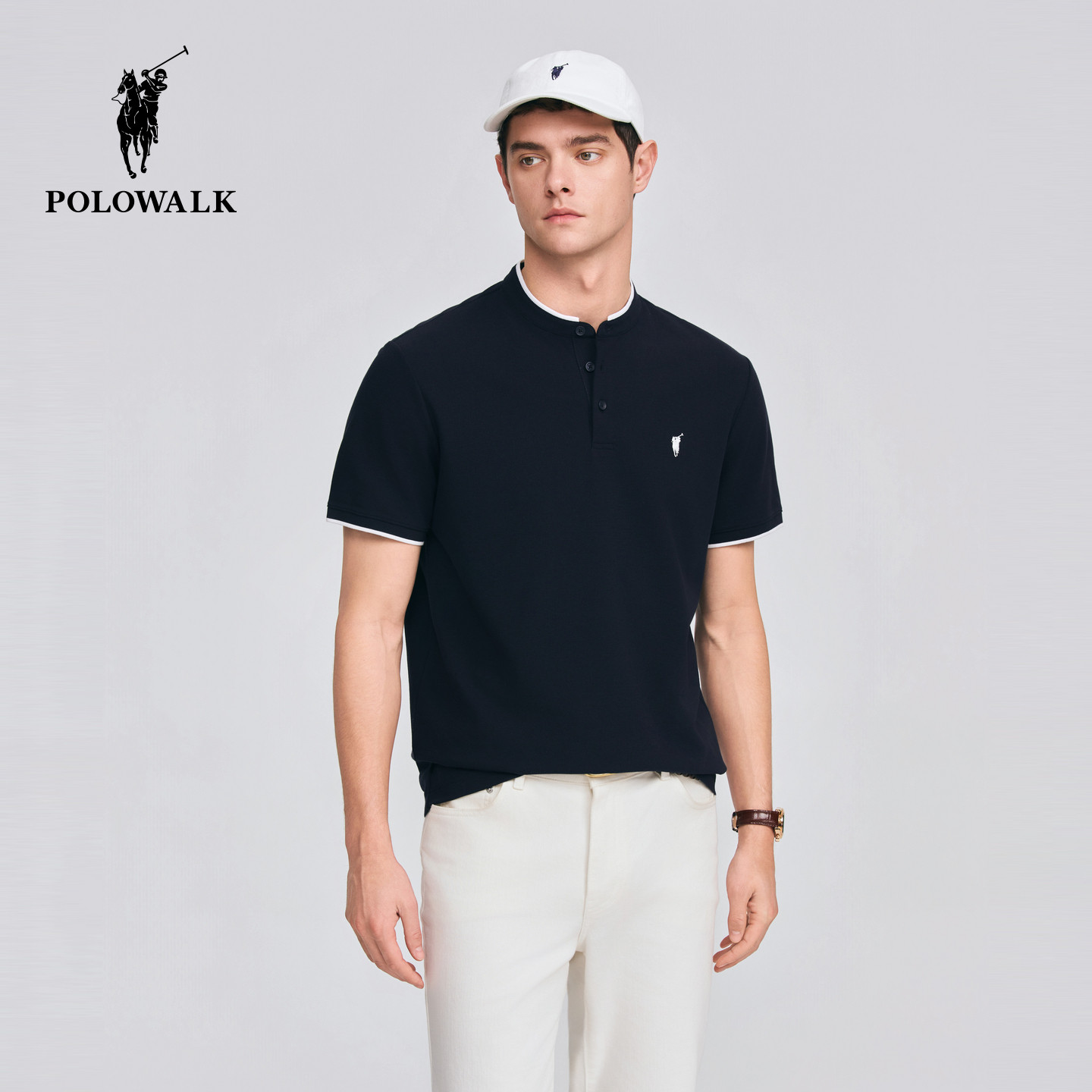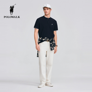 短袖 撞色亨利领商务休闲短袖 T恤2026春季 男装 T恤 新品 POLOWALK男式