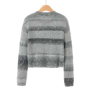 粗条纹慵懒休闲圆领短针织衫 春装 859 文 599西湖阁老