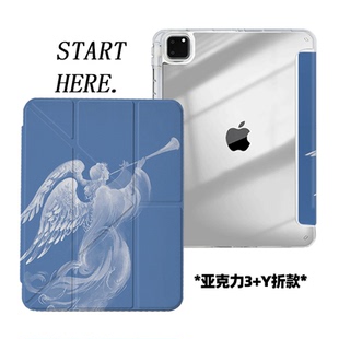 原创小众蓝翼信使iPad2026新款 11代苹果air8防弯Y折ipad壳三折第9代平板壳11寸Pro亚克力适用mini7带笔槽