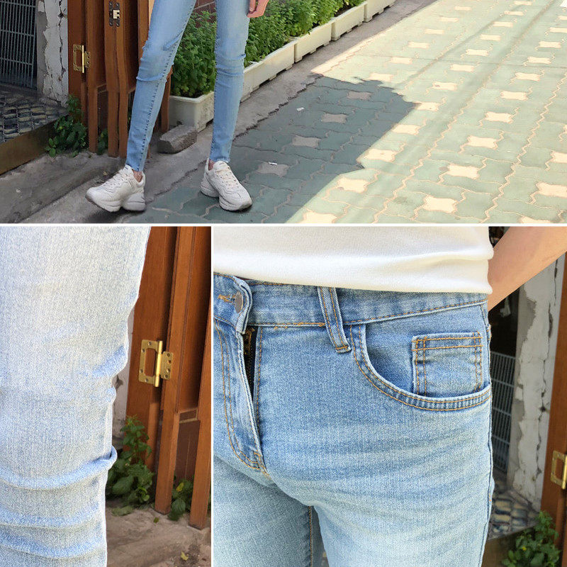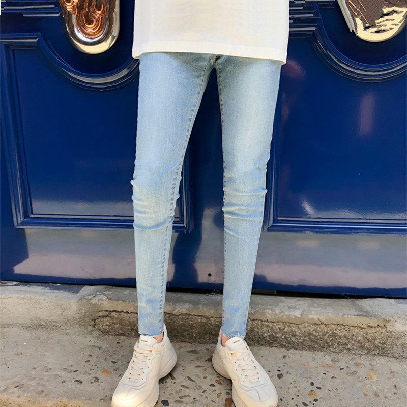 九分显瘦裤 子铅笔裤 天蓝色薄修身 男浅色新款 裤 9裤 小脚夏季 牛仔裤