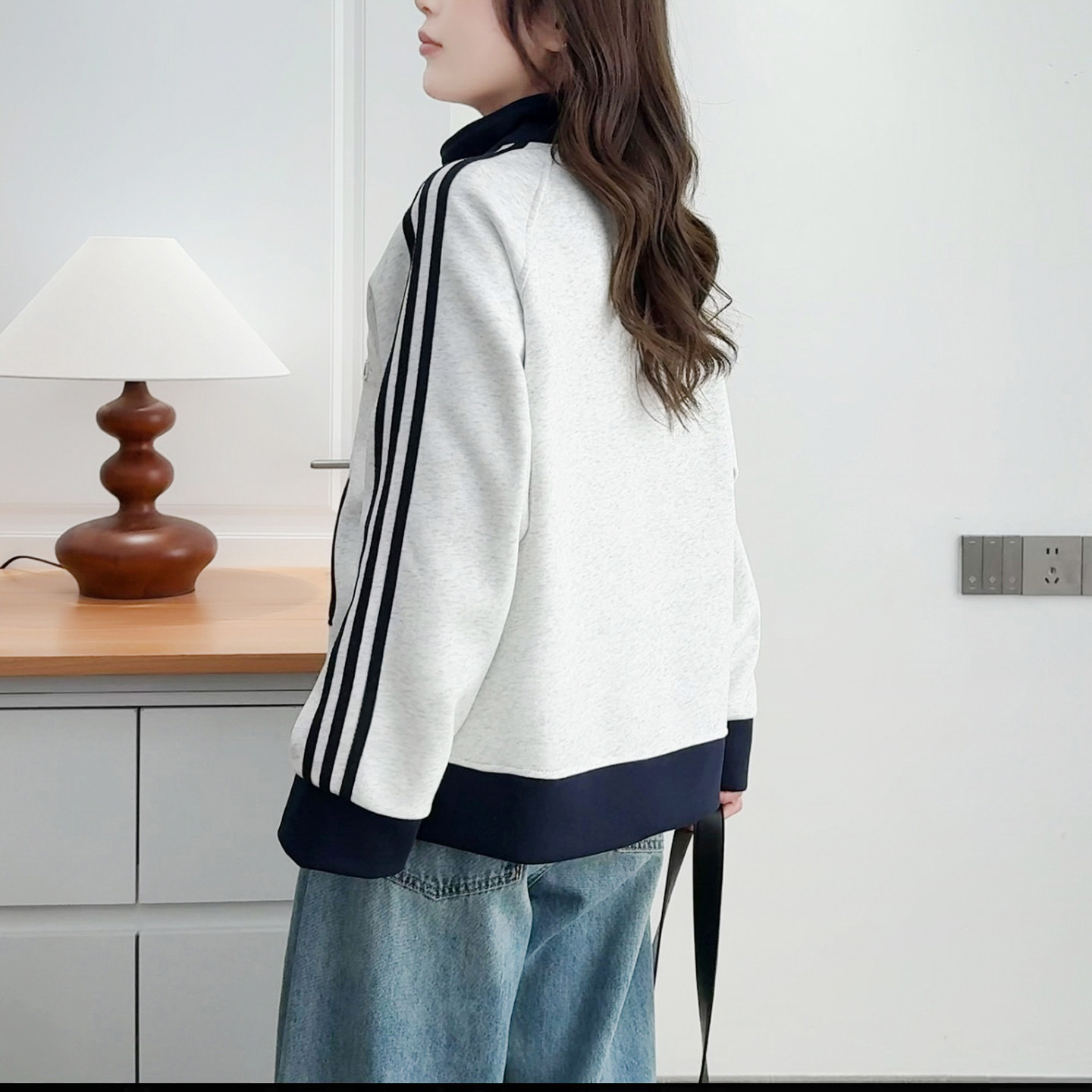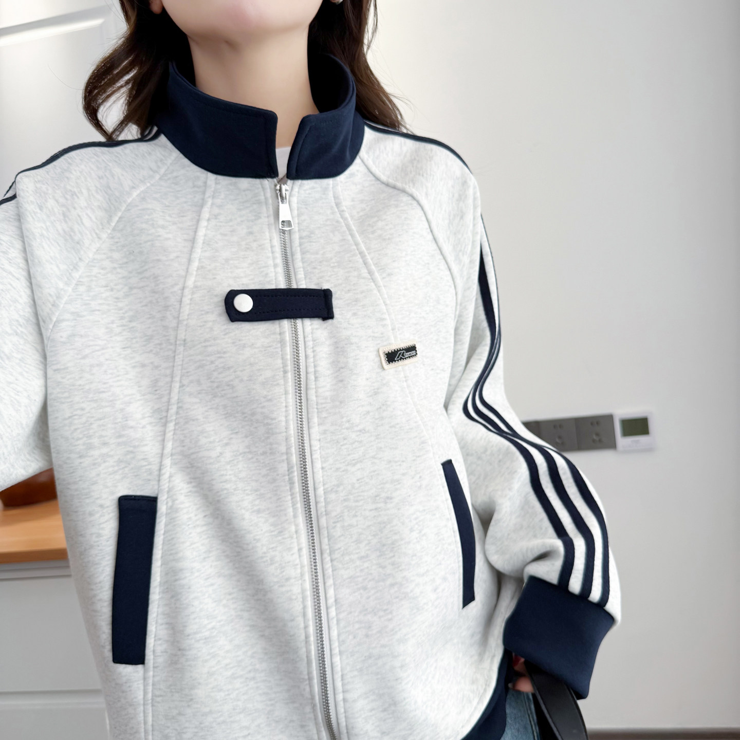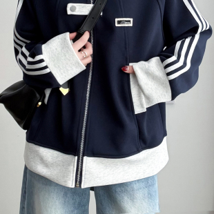 时尚 加肥加大胖妹妹卫衣2026年春季 女装 大码 立领撞色宽松外套 新款