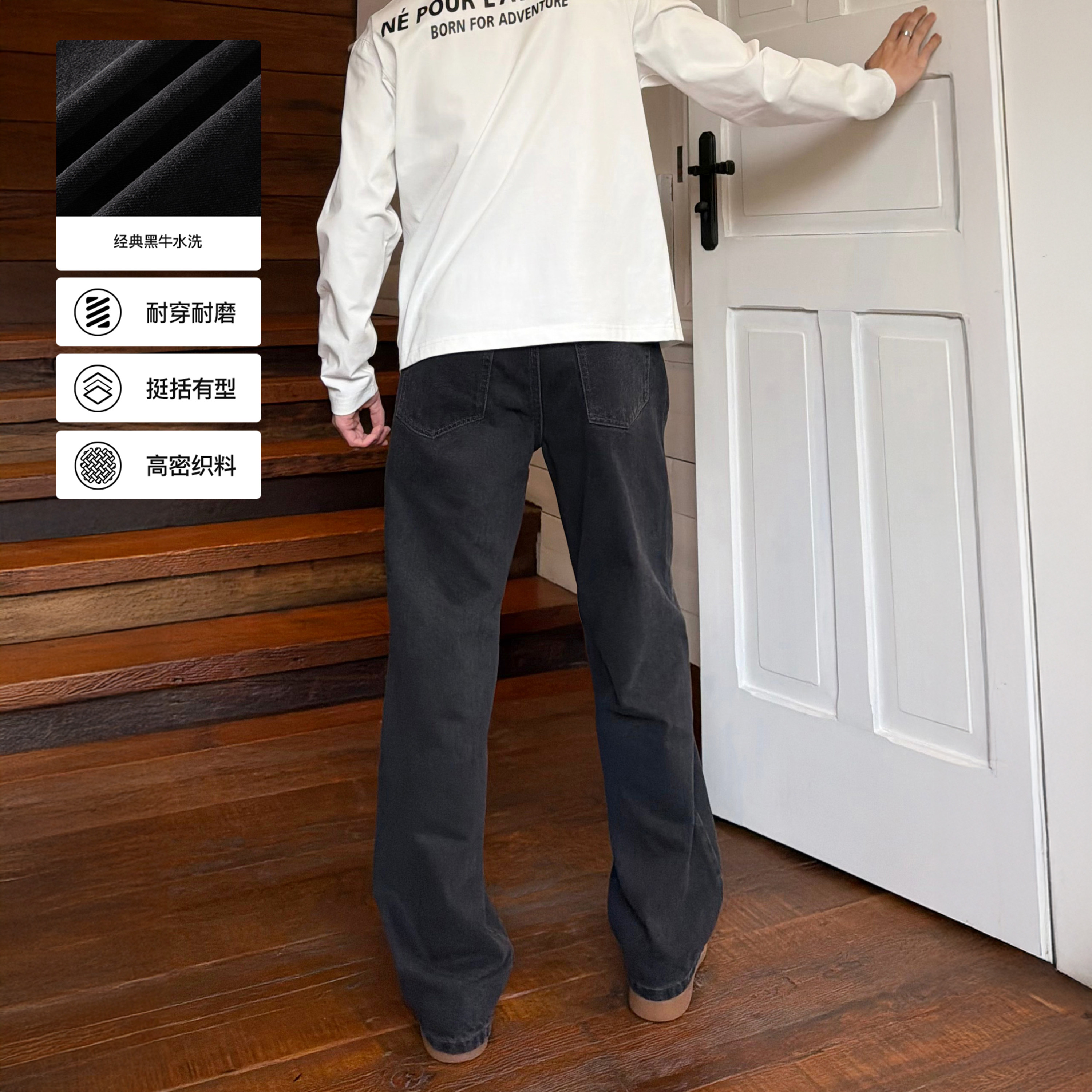 暗刃牛王 直筒黑灰水洗裤 春季 男士 子 复古休闲牛仔裤 SANBAI叁佰