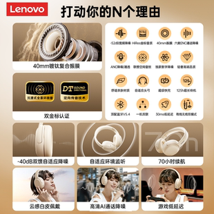 联想蓝牙耳机头戴式 ANC主动降噪电竞游戏运动长续航 无线2026新款