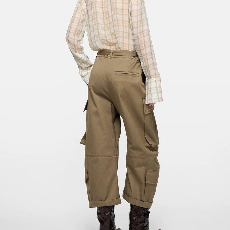 多口袋弯刀休闲裤 九分裤 女 小众纯色高腰工装 2026早春新款