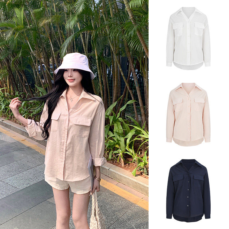 防晒衬衣宽松polo领上衣 外套薄款 MosesQueen魔西女王紫色长袖 衬衫