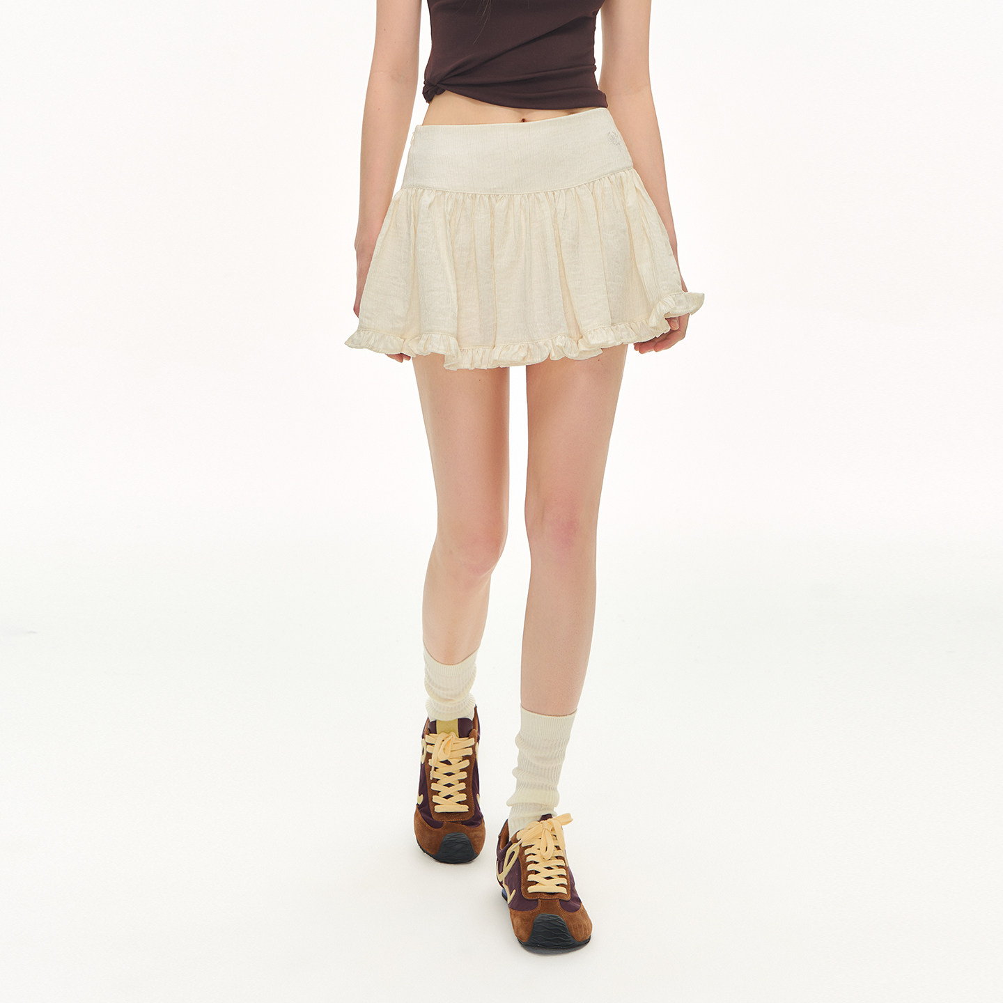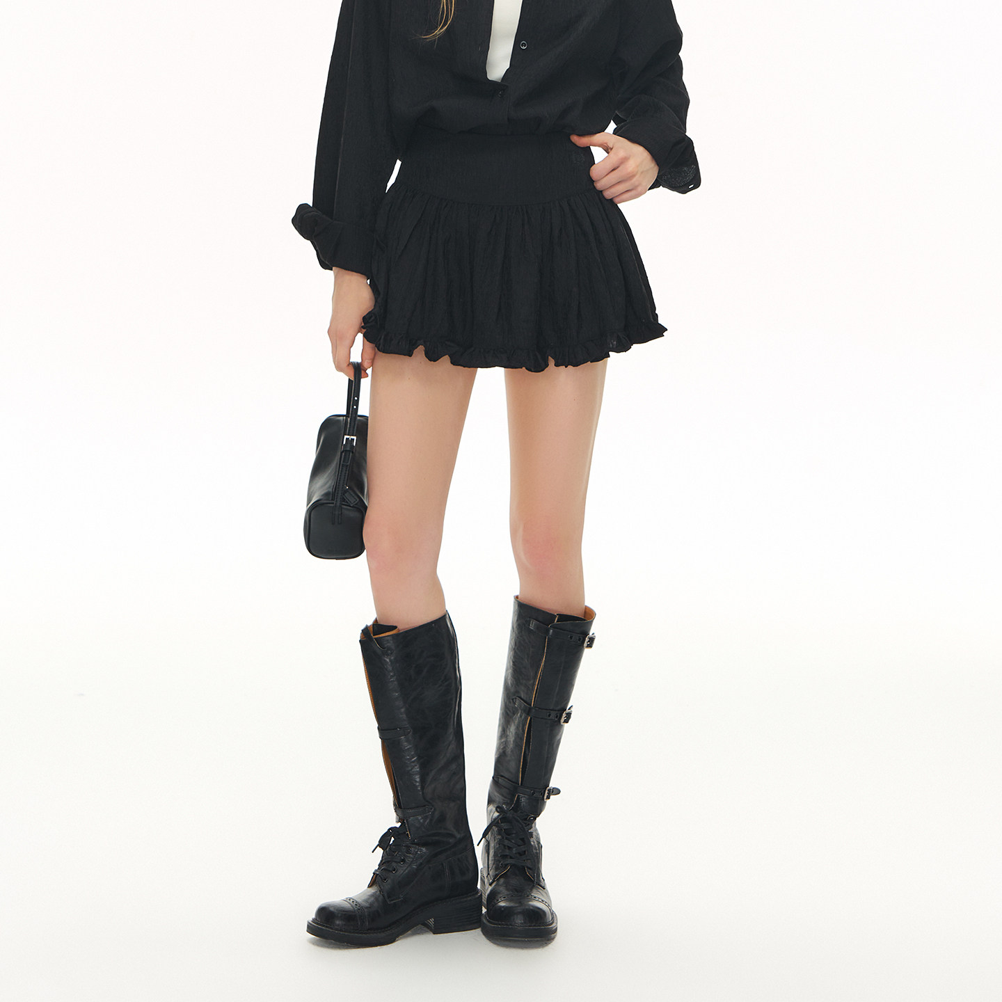 CLIMAX VISION天丝羊毛亮丝肌理感芭蕾风木耳边防走光蛋糕短裙