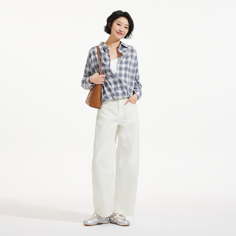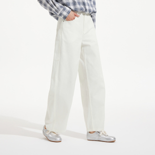 休闲宽松弯刀牛仔裤 热风女士弯刀裤 新款 2026年夏季 白色直筒牛仔裤