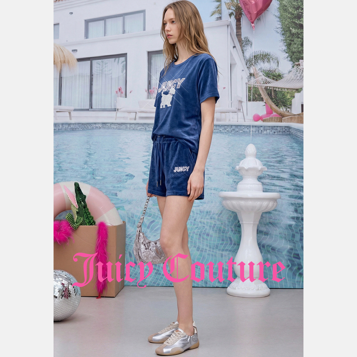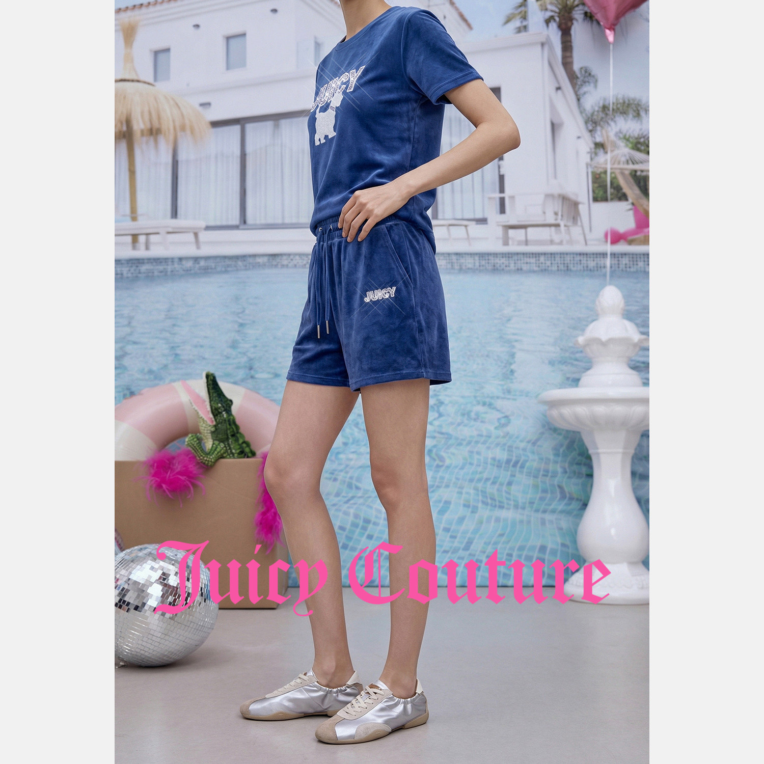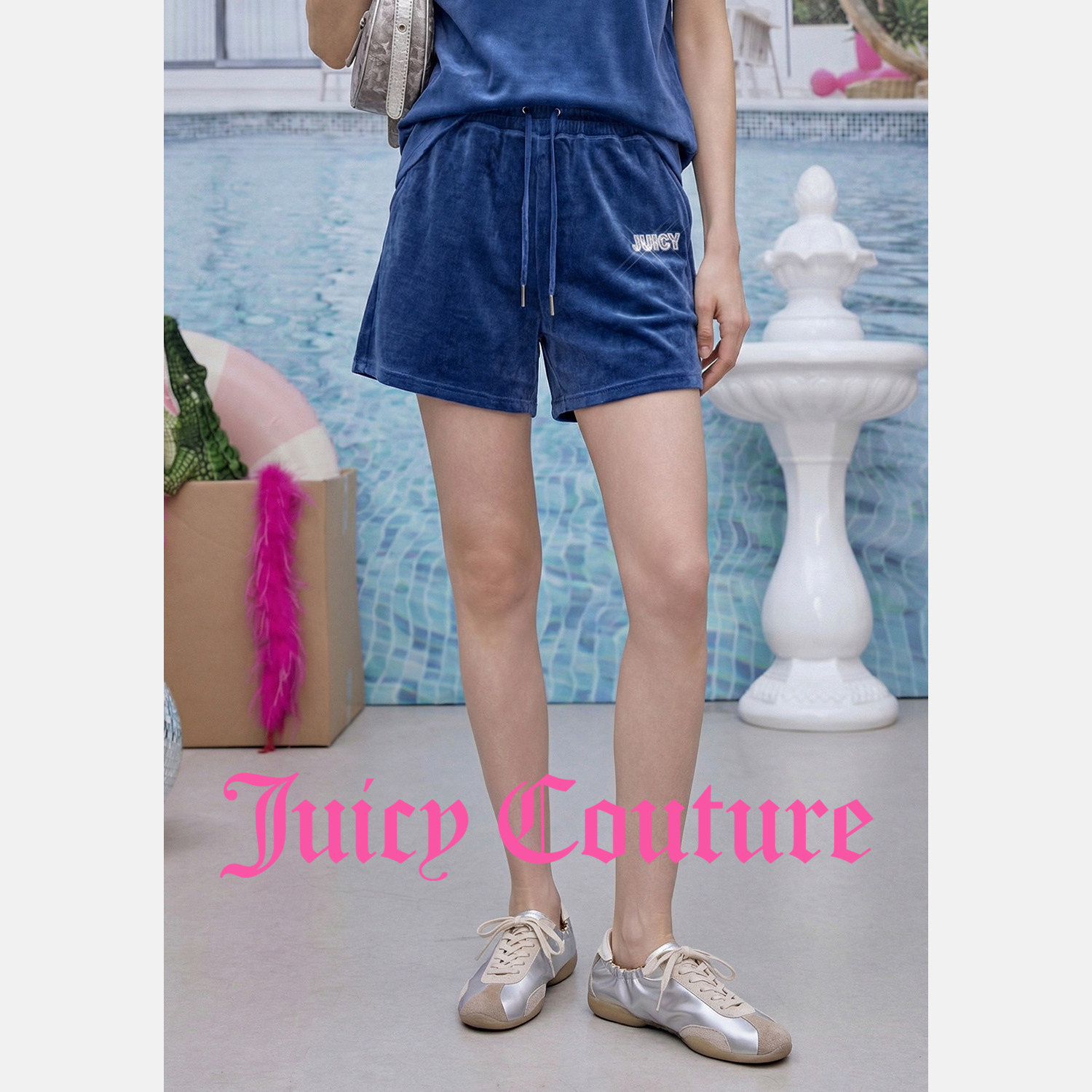 天鹅绒烫钻刺绣丝绒短裤 Juicy 新款 女26夏季 Couture橘滋休闲裤