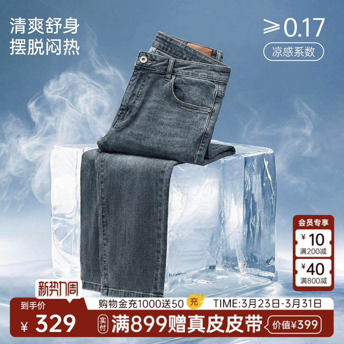 轻薄款 利郎官方九分牛仔裤 男26夏季 裤 空调牛仔 男装 子 四面弹