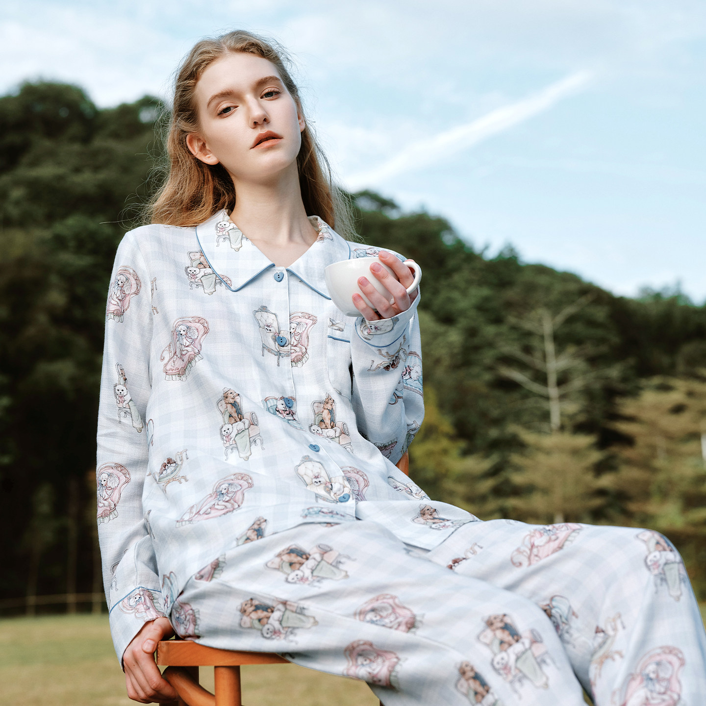 哺乳睡衣长袖 TugTug月子服夏薄款 产妇睡衣产后家居服套装 新品